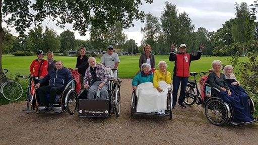 Vi gør meget ud af at lave givende og nærværende aktiviteter sammen med vores beboere. Her et billede fra vores fællestur med organisationen Cykling uden alder.