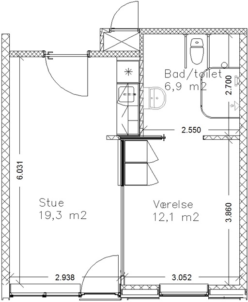 Her ser du en plantegning der viser, hvordan en bolig er indrettet.
