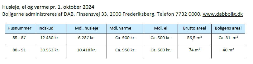Samtlige lejligheder udlejes af DAB som er ansvarlige for alt praktisk vedrørende lejemålet.