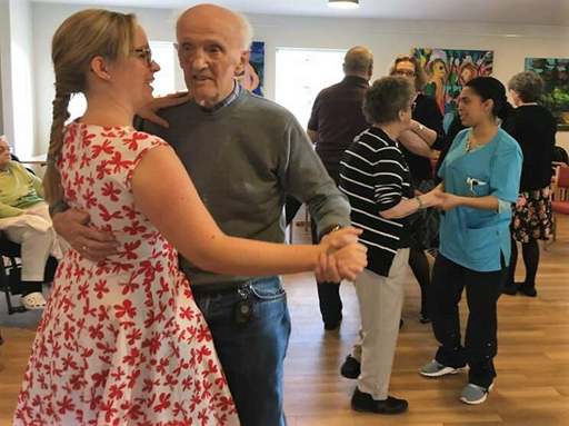 fælles gymnastik, musik og quiz, syng med omkring klaveret og mange andre løbende tilbud som besøgs hunde, besøgsbabyer og gudstjeneste.
